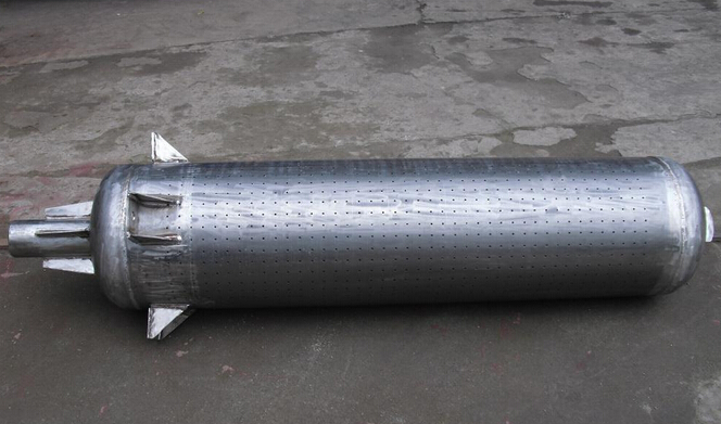 2、排氣消聲器其吸聲系數(shù)高,吸收頻帶寬,壓力損失小,氣流再生噪聲低,且易于控制。為獲得寬頻帶高吸收效果,一般用三級微穿孔板結構。微穿孔板與外殼體之間以及微穿板之間的空腔尺寸大小按需要吸收的頻帶不同而異,低頻腔大(150~200mm),中頻小些(80~120mm),高頻更小些(30~50mm),雙層結構的前腔深度一般應小于后腔,前后腔深度之比不大于1:3,前部接近氣流的一層微穿孔板穿孔率應高于后層。